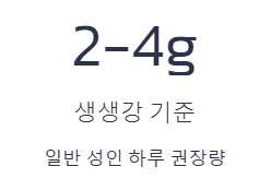 - 하루 권장량: 일반 성인은 하루 2~4g(생강가루 기준 1~2g) 이내가 적당합니다. 너무 많이 먹으면 속쓰림이나 설사를 유발할 수 있습니다.
